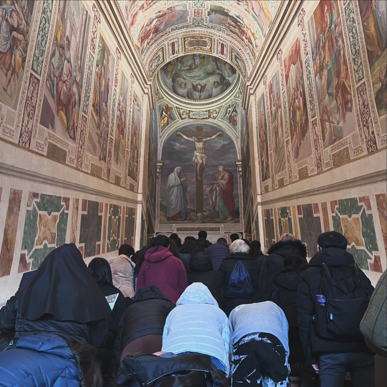 I recommend that you pause and reflect for 30-60 seconds after each invocation. Sometimes, it can be helpful to picture Our Blessed Lord at the top of the staircase with Pilate, and St. John the Beloved and Our Blessed Mother Mary ascending these steps on either side with you.