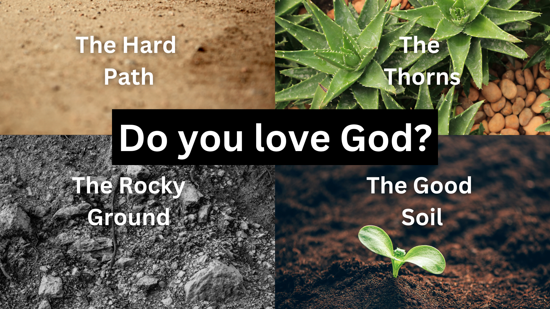 For those who weren’t here last weekend, these are 4 responses we can have to this question: Do you love God? based on the 4 options of soil that Jesus speaks about in his parables.