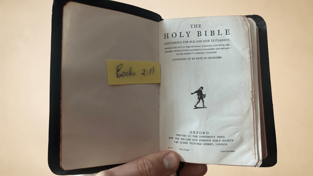 It was this – a small sticky note that read: Eccles 2:11.